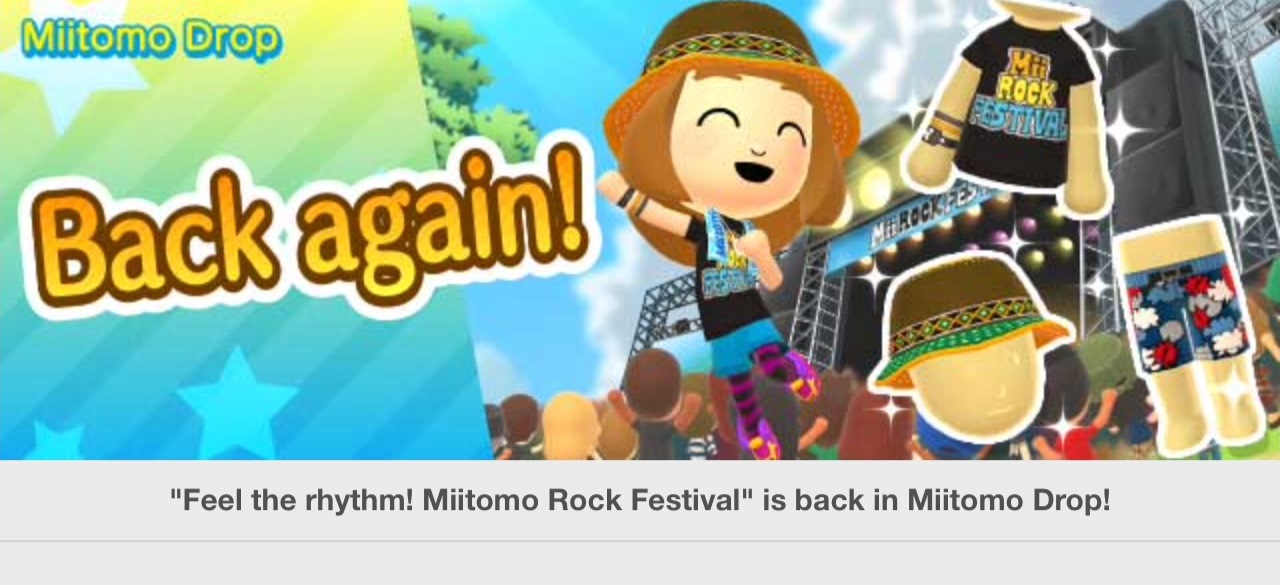 “Feel the rhythm! Miitomo Rock Festival” is the returning theme. The stages provide the following: