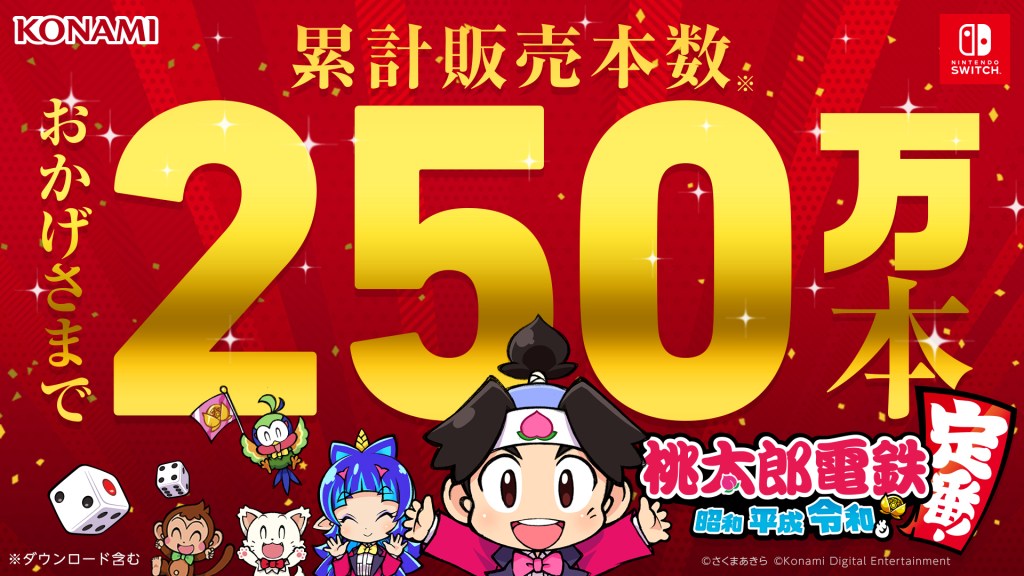 Konami’s Switch game Momotaro Dentetsu: Showa, Heisei, Reiwa mo Teiban! is still setting milestones in Japan. Today, it was announced that over three million copies have been sold.