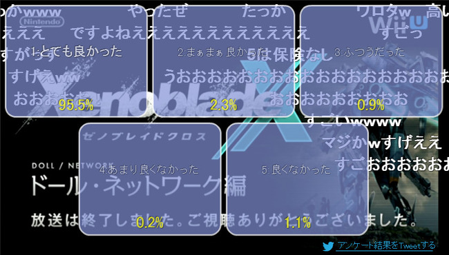 An overwhelming majority of viewers were happy with today’s Xenoblade Chronicles X presentation. Here’s a look at the results: