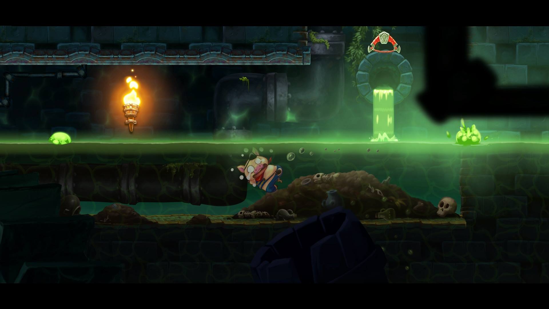 As you can see, the proportions of the frog are now different. With the new freedom of entirely hand-drawn animation we are not dependent on an overarching skeleton/puppet system anymore which means we can let him do really cool stunts. Swinging rings and using the tongue will now look much more dynamic. He’s also looking more like a frog than before which adds a lot to the visual variety while playing Monster Boy. We hope you like the new look!