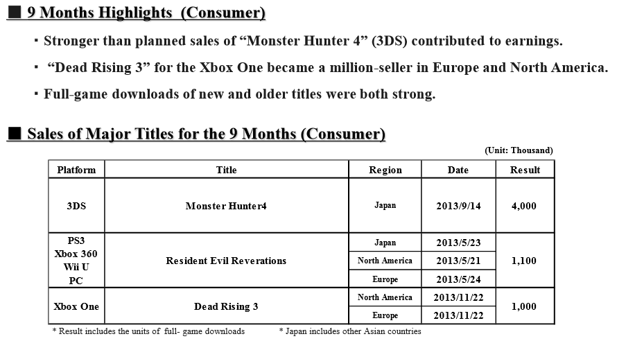 Capcom also says that Resident Evil: Revelations HD and Phoenix Wright: Ace Attorney – Dual Destinies also reached their projected sales.