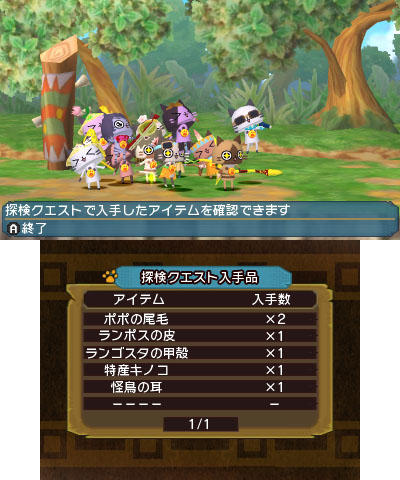 Capcom released yet another batch of screenshots from Monster Hunter Diary: Poka Poka Airou Village today. In the first few images, you can see the bonuses offered in Monster Hunter X to those who have Monster Hunter Diary save data on their SD card. All others are screenshots from Monster Hunter Diary: Poka Poka Airou Village DX.
