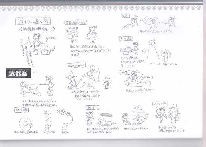 At Monster Hunter Festa this year, Capcom distributed the Monster Hunter Generations Concept Art Book. This has some interesting information about concepts for a pair of unused weapons. At one point, Capcom was considering the Hunting Hound and Wyvern Boomerang.
