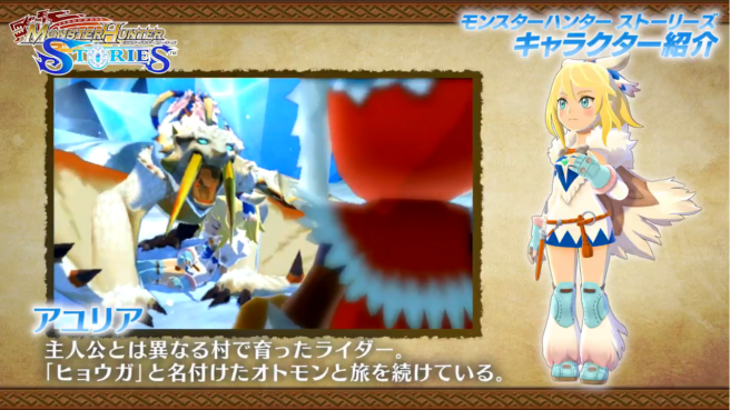 Monster Hunter Stories’ character trailers continue, this time featuring Ayuria. Her companion Barioth, nicknamed Hyouga, is also featured, as well as the mix of contention and companionship that they will hold with the protagonist. Watch it below: