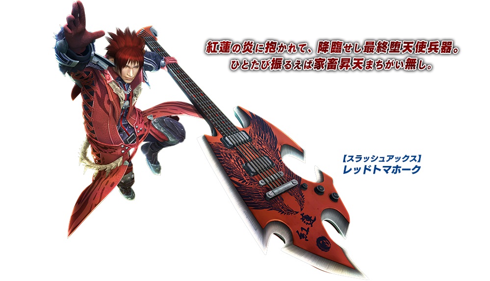 Today, Capcom detailed yet another collaboration in Monster Hunter XX. In teaming up with the game / anime Show by Rock!!, there will be a Slash Axe weapon named Red Tomahawk. Capcom has also shown an illustration of Show by Rock!! character Crow wielding the weapon being published.