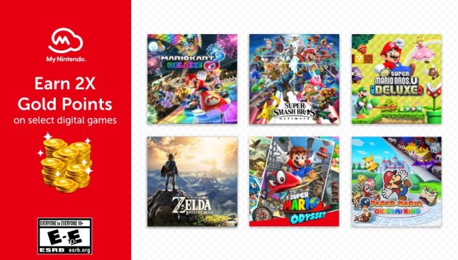 Through the month of February, My Nintendo members can earn twice the normal amount of Gold Points on select first-party Switch games. Six games are eligible for the offer.