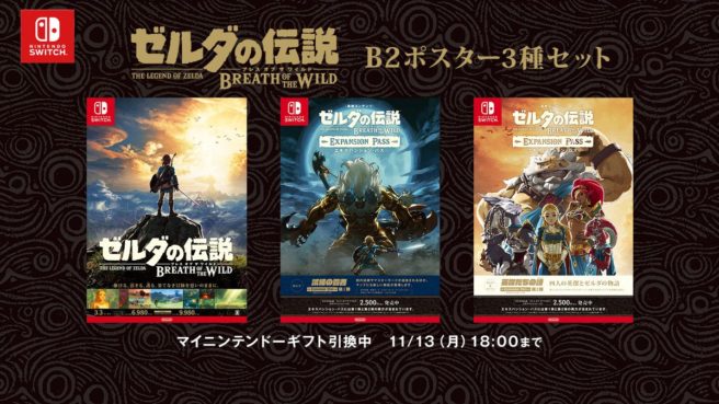 Over in Japan, My Nintendo has updated with a new physical reward. Members in the country can use their points to order three Zelda: Breath of the Wild posters. The set costs 300 Platinum Points.