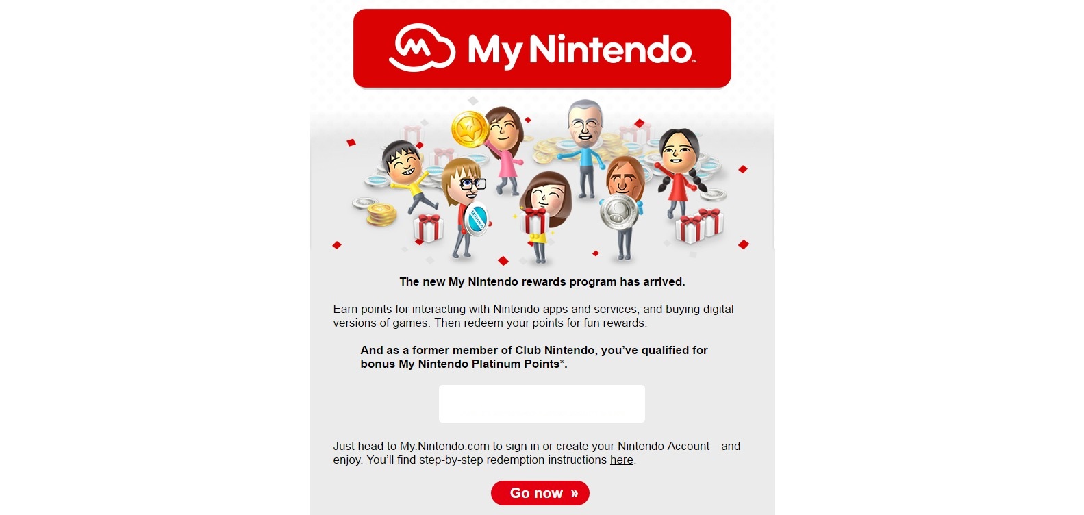 Nintendo is sending out a new email to customers in North America about Miitomo, My Nintendo, and the new web shop. If you were a former Club Nintendo member in North America, you may find a little bonus inside.