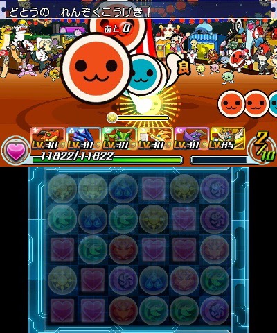 Puzzle & Dragons Z has a crossover with Taiko: Dream Master’s Don – otherwise known as the drum from Taiko no Tatsujin. A Drop Code allows players to unlock a crossover dungeon by playing Namco Bandai’s Wii U rhythm game or Taiko: Drum Master Pink Version in arcades. On the other end of the spectrum, Taiko no Tatsujin Wii U features Puzzle & Dragons songs such as Walking Through The Towers and the Upside Down World as free DLC.