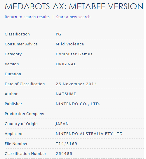 Medabots AX: Metabee Version rated in Australia