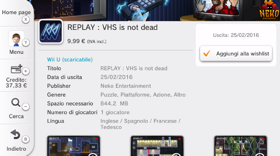 Replay: VHS is not Dead is planned for release on Wii U, a listing on the USK confirms.