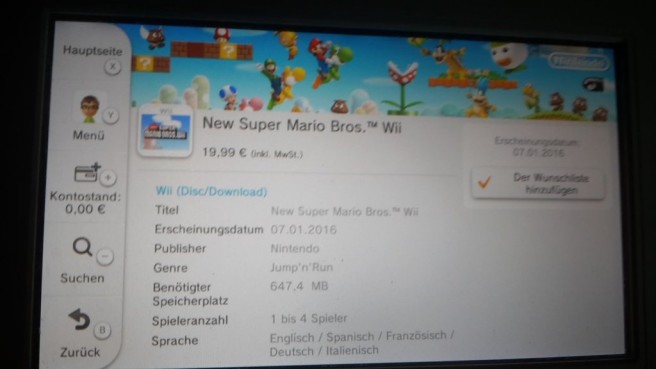 As confirmed through a listing on the eShop, New Super Mario Bros. Wii will be available for purchase on European Wii U systems starting on January 7. The game will cost €19.99. Nintendo hasn’t said when New Super Mario Bros. Wii will be out in North America, but we’ll let you know if we hear anything on that front.