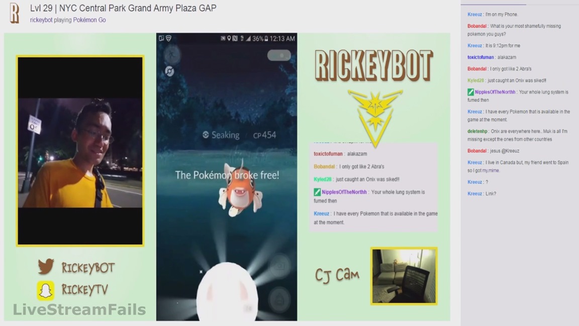 While playing Pokemon GO last night, Twitch user Rickeybot was assaulted and robbed in New York’s Central Park. It all took place as the game was being streamed. Luckily, the assailant’s face was shown on camera, which should make it easier for police to take action.