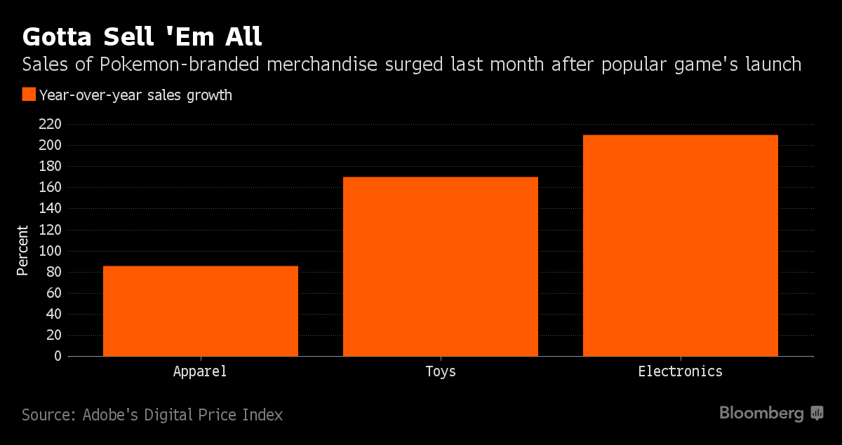 Other specific data is tough to come by. However, Bloomberg does have an anecdote from Ansony Morales, assistant manager at a Virginia-based Build-A-Bear, who said more customers are looking for Pokemon-related merchandise. We also heard from GameStop last month that sales rose by more than 100 percent at stores used as PokeStops.