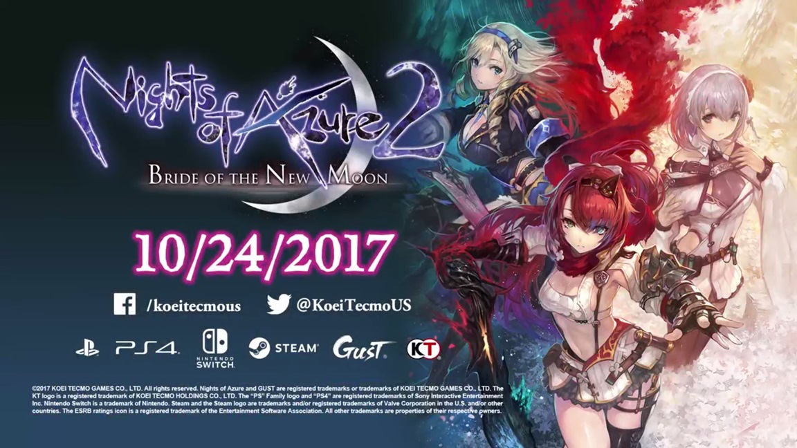 Nights of Azure 2 is out now in Japan. Koei Tecmo will publish the game physically and digitally overseas in late October.
