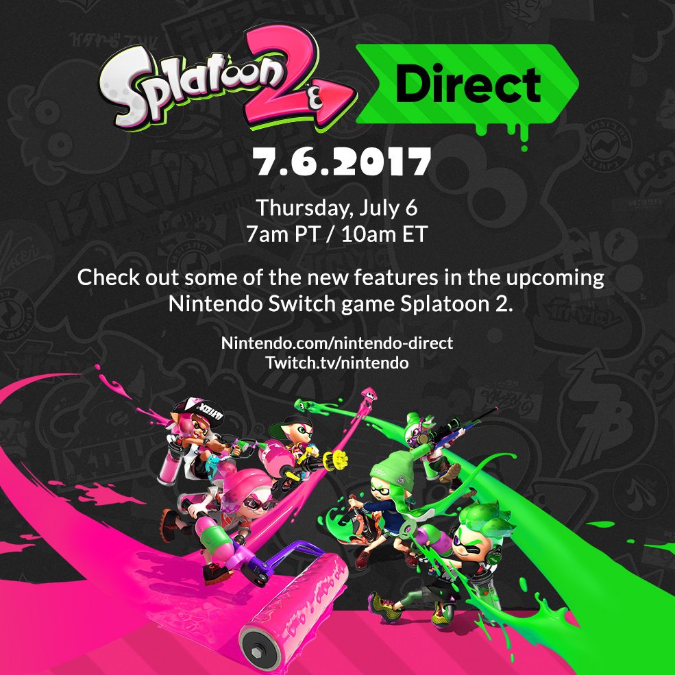 The Splatoon 2 Direct will air on Thursday at 7 AM PT / 10 AM ET / 3 PM in the UK / 4 PM in Europe.
