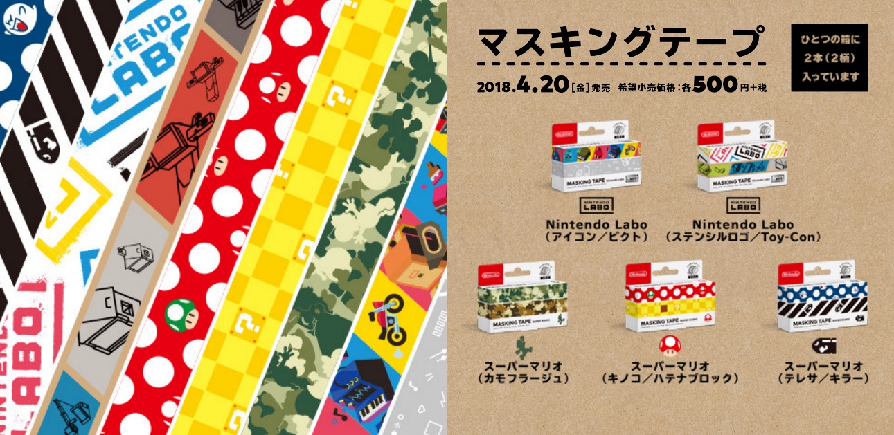 When Nintendo Labo launches in March, Japanese users will be able to purchase special masking tape. Nintendo has announced five different sets for the country, each costing 500 yen. Three are Super Mario-themed, while the other two are just based around Labo.