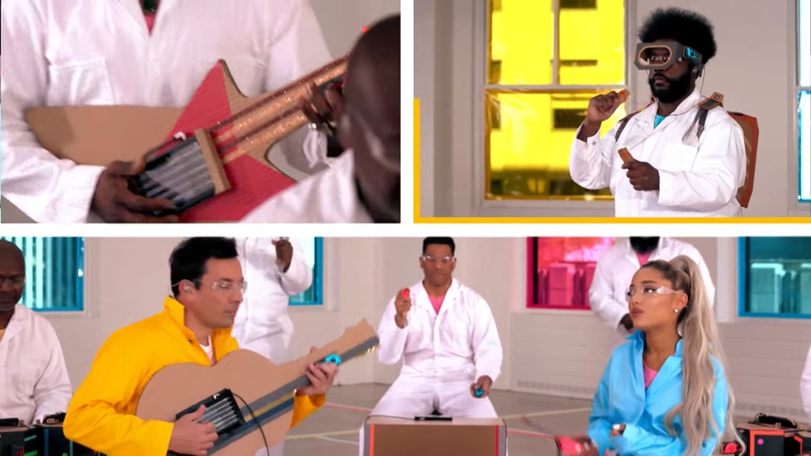 Ariana Grande and The Roots perform with Nintendo Labo instruments
