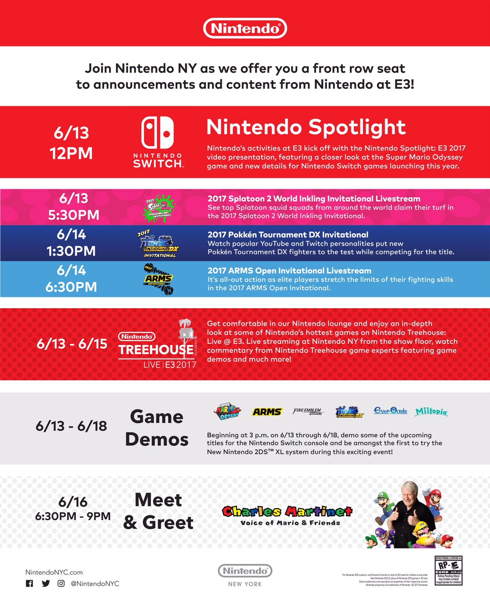 Nintendo NY’s E3 2017 plans – presentation and Treehouse streams, meet Charles Martinet, demos