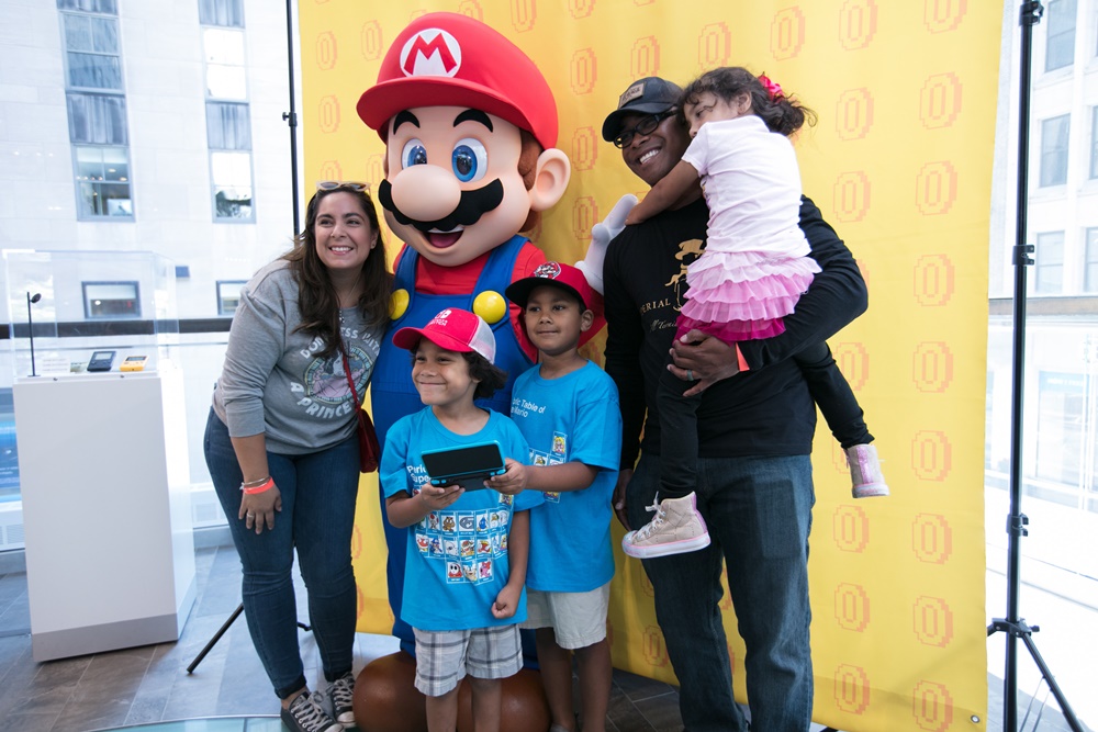 In this photo provided by Nintendo of America, Gia P. from Bronx, NY and Alyssa P. from Bronx, NY meet with Mario at the Nintendo NY store in Rockefeller Plaza on Friday, March 24. Fans gathered to celebrate the launch of Mario Sports Superstars, an action-packed Nintendo 3DS game that finds players competing in five full-featured sports: Baseball, Soccer, Golf, Tennis and Horse Racing.