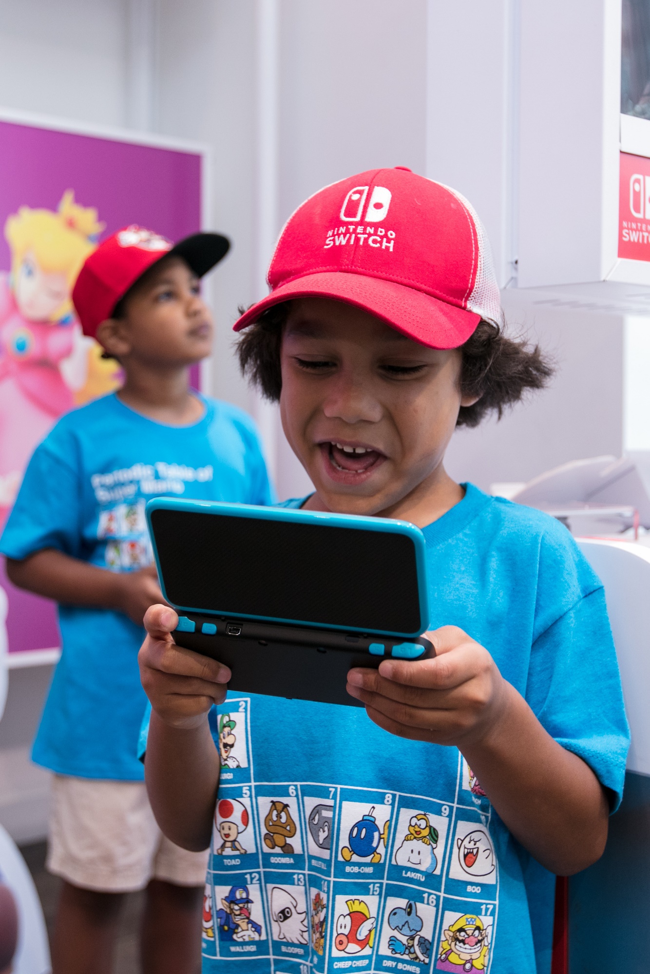 In this photo provided by Nintendo of America, fans Gavin G., age 7 and Glenn G., age 5, from Queens, NY, gather at the Nintendo NY store for the Nintendo Back-to-School Celebration. Fans played games, received Nintendo school supplies, signed a pledge to work hard this school year and had the chance to have their photo taken with Mario.Photo 3