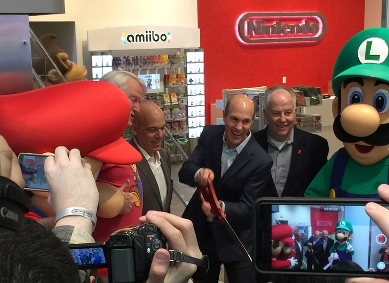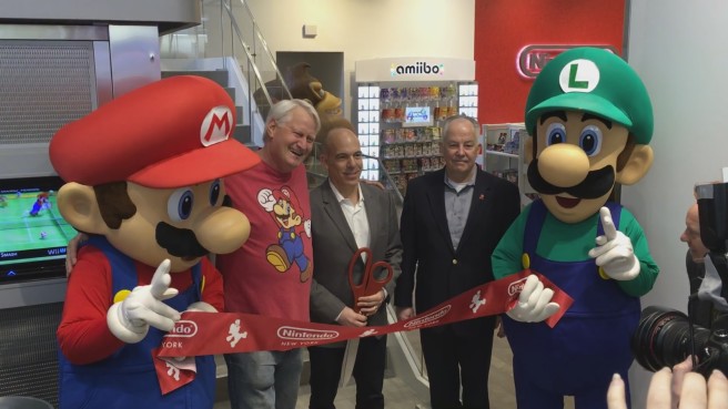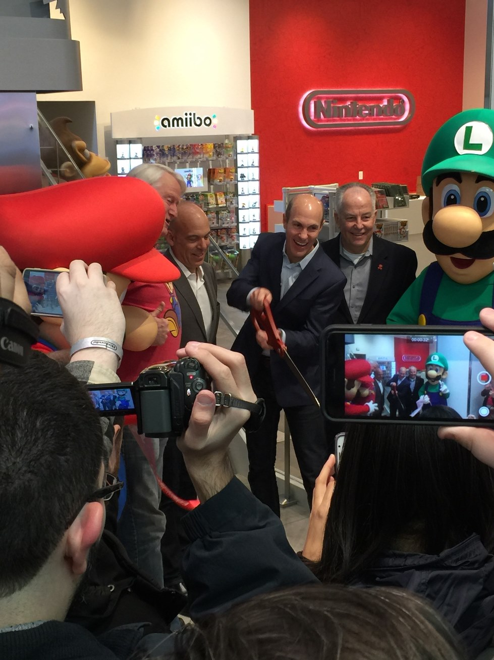Prior to the public reopening of Nintendo NY, members of the press were invited for a brief event. One part of this involved a ribbon cutting ceremony, which you can see below.