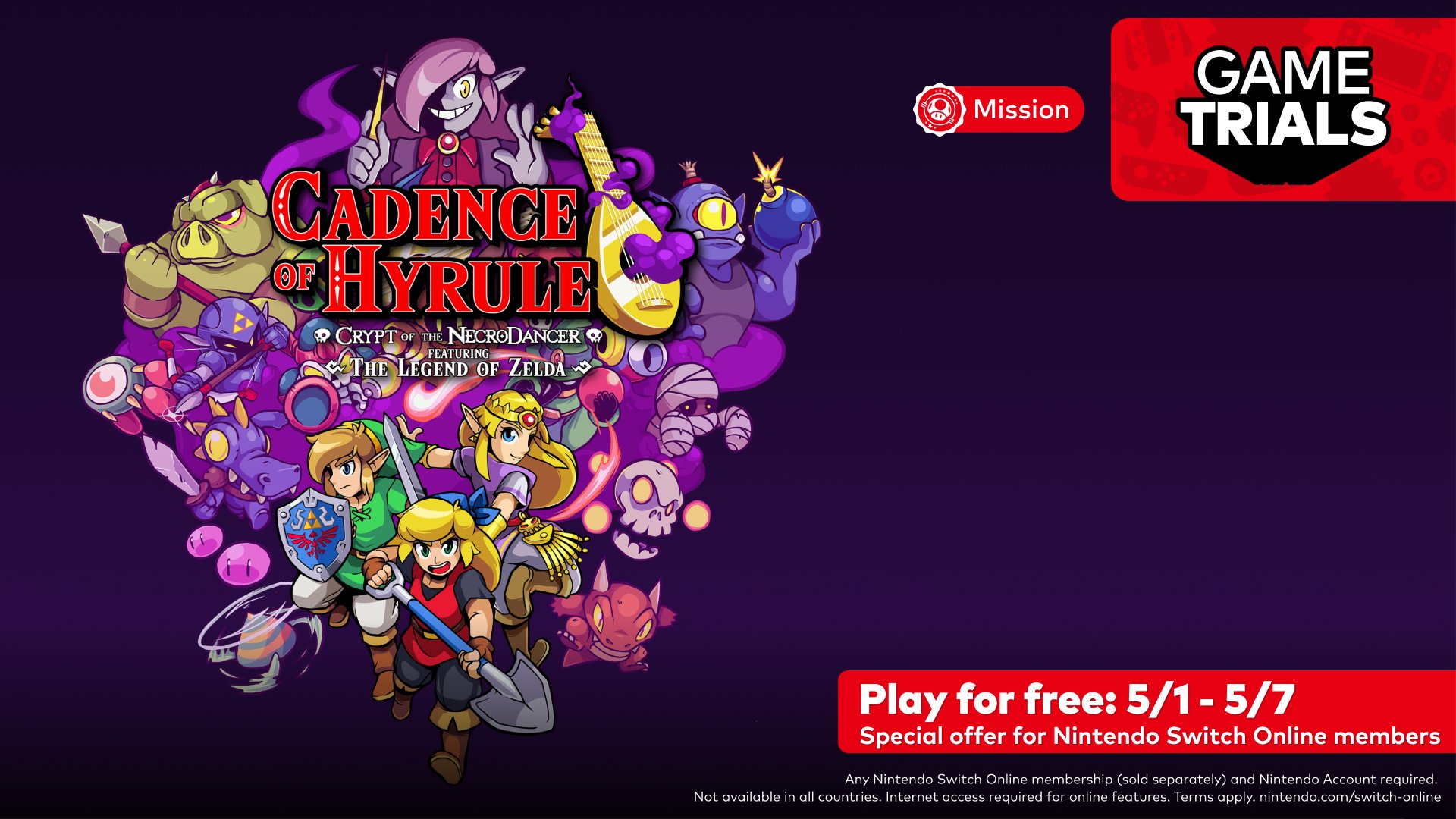 Original (4/27): Another Game Trial has just been announced for Nintendo Switch Online, with subscribers in North America gaining access to Cadence of Hyrule: Crypt of the NecroDancer Featuring The Legend of Zelda.