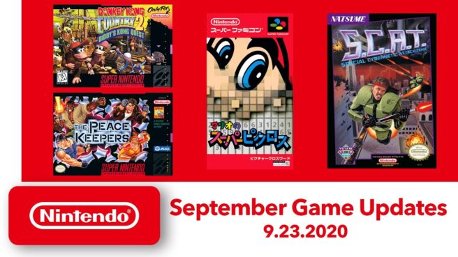 As far as the SNES games go, users can look forward to Donkey Kong Country 2, Mario’s Super Picross, and The Peace Keepers. S.C.A.T.: Special Cybernetic Attack Team is the lone NES addition.