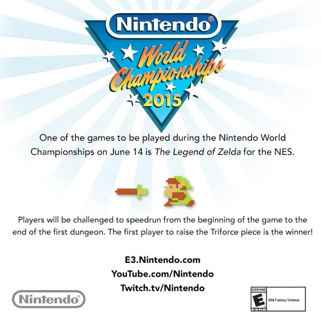 The Nintendo World Championships 2015 will be held on June 14 at 6 PM ET / 3 PM PT. A pre-show will kick off 25 minutes before the show.