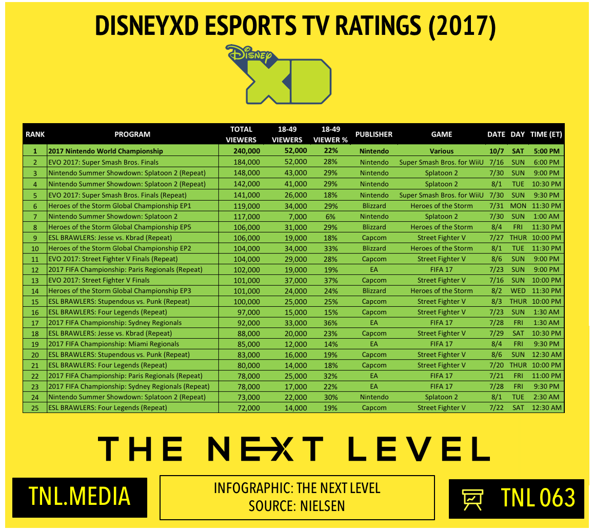 Nintendo World Championships 2017 had the highest eSports TV ratings on Disney XD this year