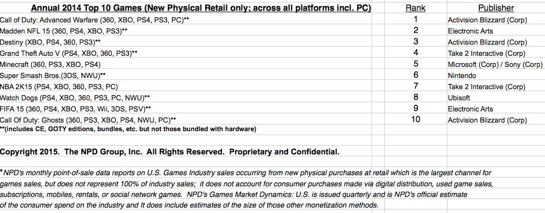 January 2015 NPD: top 10 best-selling games in the U.S.