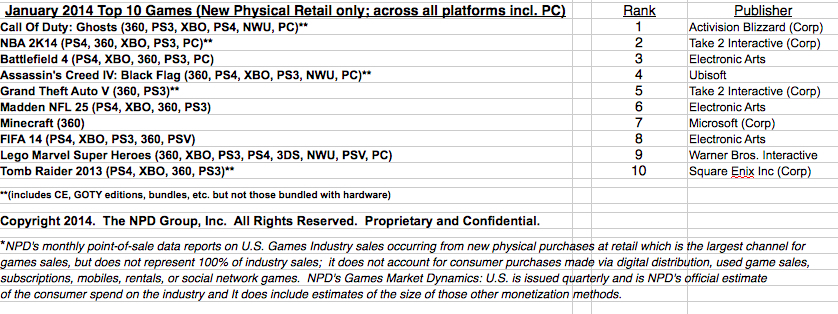 January 2014 NPD: top 10 best-selling games in the U.S.