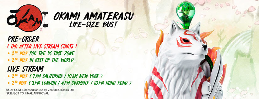 A new Okami product is coming from First 4 Figures. The company has unveiled an Amaterasu Life Size Bust, with pre-orders beginning early next week. It will be the first Life Size Bust product launch in First 4 Figures’ Okami line.