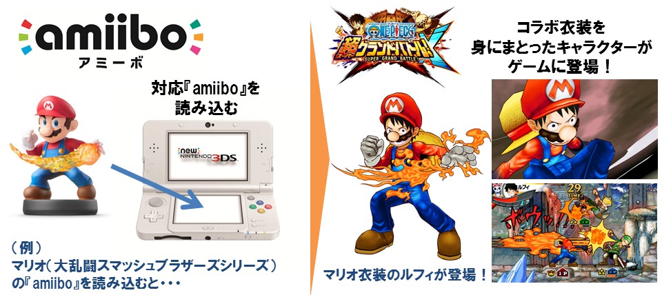 amiibo support is coming to One Piece: Super Grand Battle! X. Bandai Namco has revealed that the functionality will be used to unlock special costumes in the game. A Jump scan shows Luffy wearing Mario and Luigi costumes, Sanji wearing a Fox outfit, and Zoro in a Link costume.