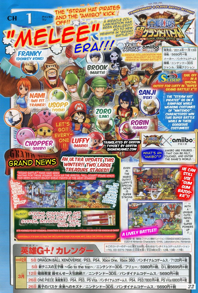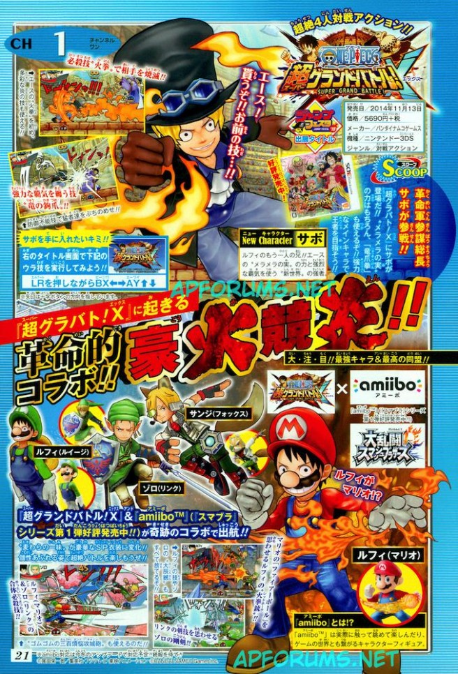 Another scan for Another One Piece: Super Grand Battle! X has popped up online, confirming new Nintendo costumes for the game through amiibo. They are as follows: