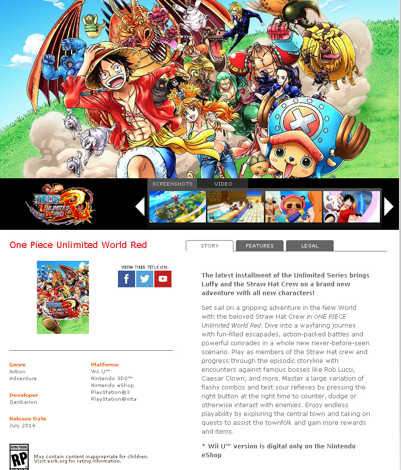 One Piece: Unlimited World Red is heading to Japan on June 12 (including the 3DS patch to bring it in line with the other versions). In North America, the game appears to be on track for a July release. That’s according to Bandai Namco’s official page for Unlimited World Red, which lists the apparently launch month.