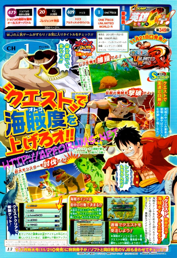 As far as we know, One Piece: Unlimited World Red lacks 3D support. The news comes from an official listing on Nintendo’s website, which simply states “None” under the 3D feature section. It’s unclear why One Piece: Unlimited World Red won’t make use of the 3D effect, but I suppose Namco Bandai has its reasons.