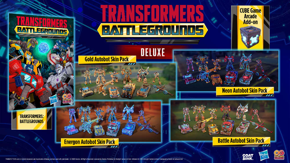 Outright Games has revealed a Digital Deluxe Edition for Transformers: Battlegrounds. Copies include the game, four Autobot skin packs, and an exclusive arcade game mode in which the Autobots and Decepticons battle it out, using their unique special abilities to keep control of the Cube across four unique arenas.