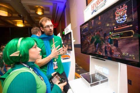 In this photo provided by Nintendo of America, Morgen Gage dressed as Saria, slashes through hundreds of enemies while playing Hyrule Warriors, during PAX Prime 2014 on Aug. 30, 2014 in Seattle. Hyrule Warriors launches for Wii U on Sept. 26. The gathering presented excited fans with the opportunity to preview the unreleased game.
