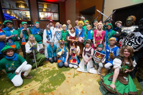 In this photo provided by Nintendo of America, fans dressed in costume pose for a photograph, while waiting in anticipation to play the action-packed Wii U game Hyrule Warriors before its Sept. 26 launch as part of an off-site event during PAX Prime 2014 on Aug. 30, 2014 in Seattle.