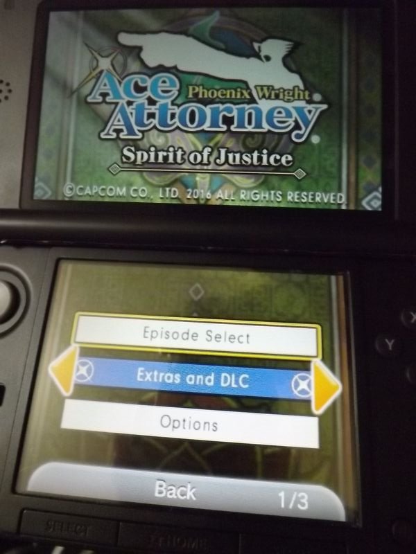 In one of the screenshots, the English menu is shown confirming Spirit of Justice’s DLC for the west. It’s right there when you start the game under “Extras and DLC”. There really was no reason to think that North America and Europe wouldn’t have the same access as Japan given how Capcom handled the series’ last release, Dual Destinies. Still, there you go.