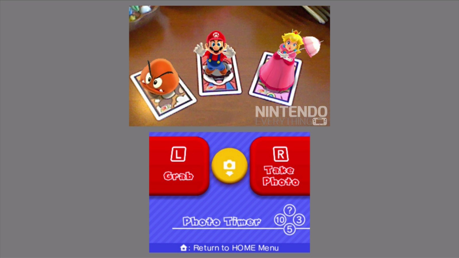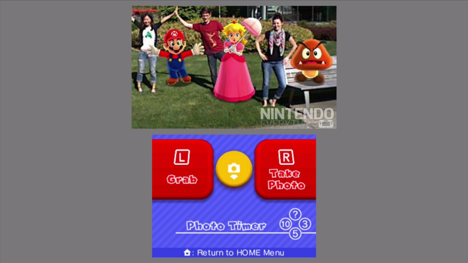 Photos with Mario is an application that allows users to take pictures with characters from the franchise. It can only be used with special-edition $10 Mario, Peach, and Goomba eShop cards.