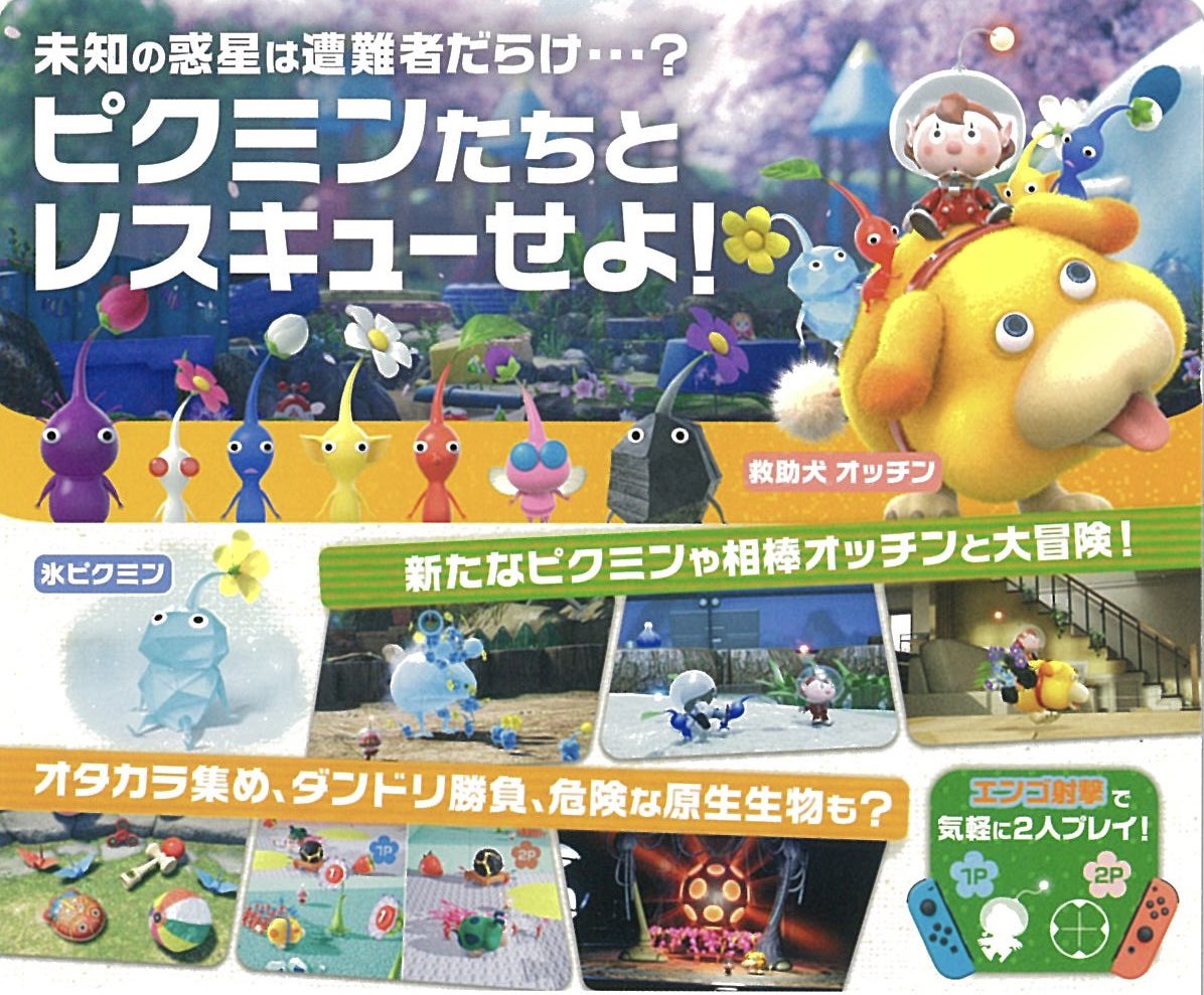 The video introduces fans to the game’s world. Like previous entries, you’ll team up with plantlike creatures, and this time around, the Rescue Pup Oatchi will be joining the fun. The game lets you explore a mysterious planet, rescue stranded castaways in strategic Dandori Battles, collect Treasures on the planet’s surface and underground, set off for Night Expeditions (also new for this entry), and more.