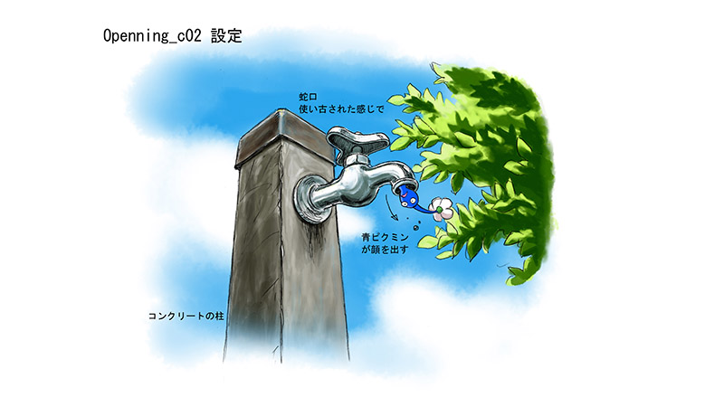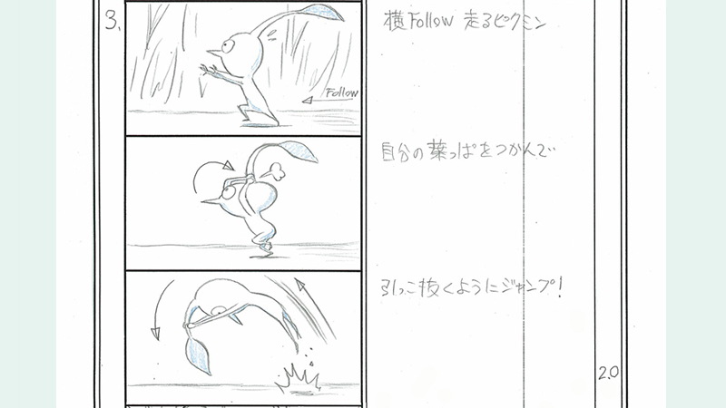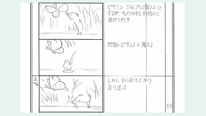 …the concept of “affinity” was something I really wanted to communicate, so I’m very happy to hear you say that. When I was working on the games, I found this feeling of affinity to build up quite naturally, and even in my normal life I was thinking, “I wonder what would happen if there were Pikmin here?” or “I wonder what this would look like from a Pikmin’s point of view?” Those little ideas became doodles, and that was the beginning of the PIKMIN Short Movies.