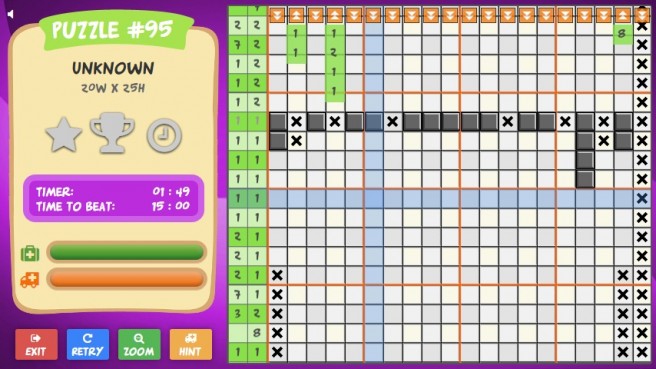 Because PixlCross saves after every move, it’s possible to exit and return to puzzles at any time. There’s also a hint system that allows the game to be as easy or difficult as players see fit.