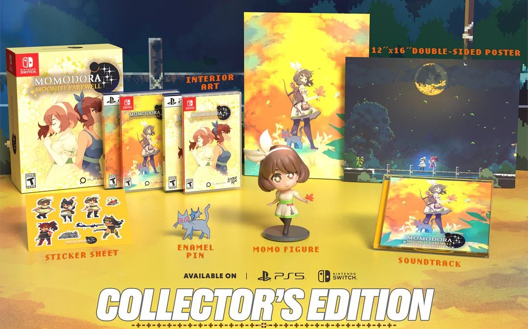 Momodora: Moonlit Farewell will have a standard copy sold alongside a collector’s edition. The latter version contains the game with interior art, soundtrack, double-sided poster, enamel pin, Momo figure, and sticker sheet.
