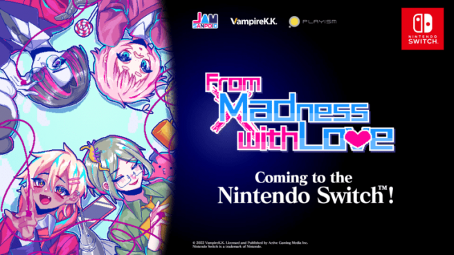 Publisher PLAYISM and developers jamsanpoid and Vampire K.K. have announced that they will be bringing From Madness with Love to Switch. The game is a pixel-art otome visual novel with four possible romance options. No release date was announced.