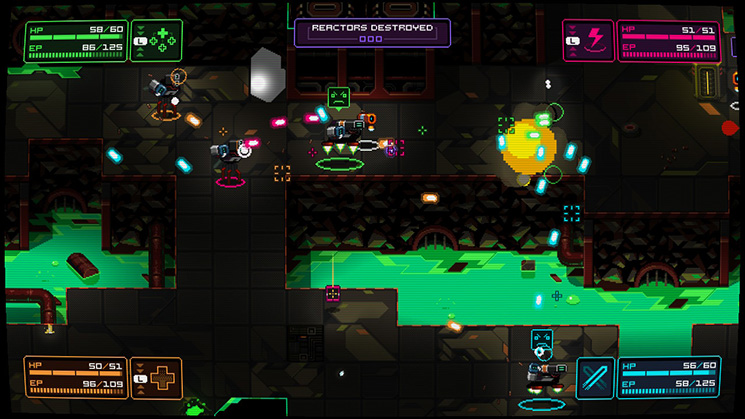 NeuroVoider* is a twin-stick shooter RPG set in a cyber futuristic world about brains shooting around evil robots with nuclear rocket launchers. Battle through the horde of vigilant robots, boost your character with the smoking remains of your victims, and defeat the master NeuroVoider to end this eternal war. Play it coop with up to 4 friends, or go alone in an adventure of hack’n’slash rampage, with a pinch of rogue-lite, and some permadeath.