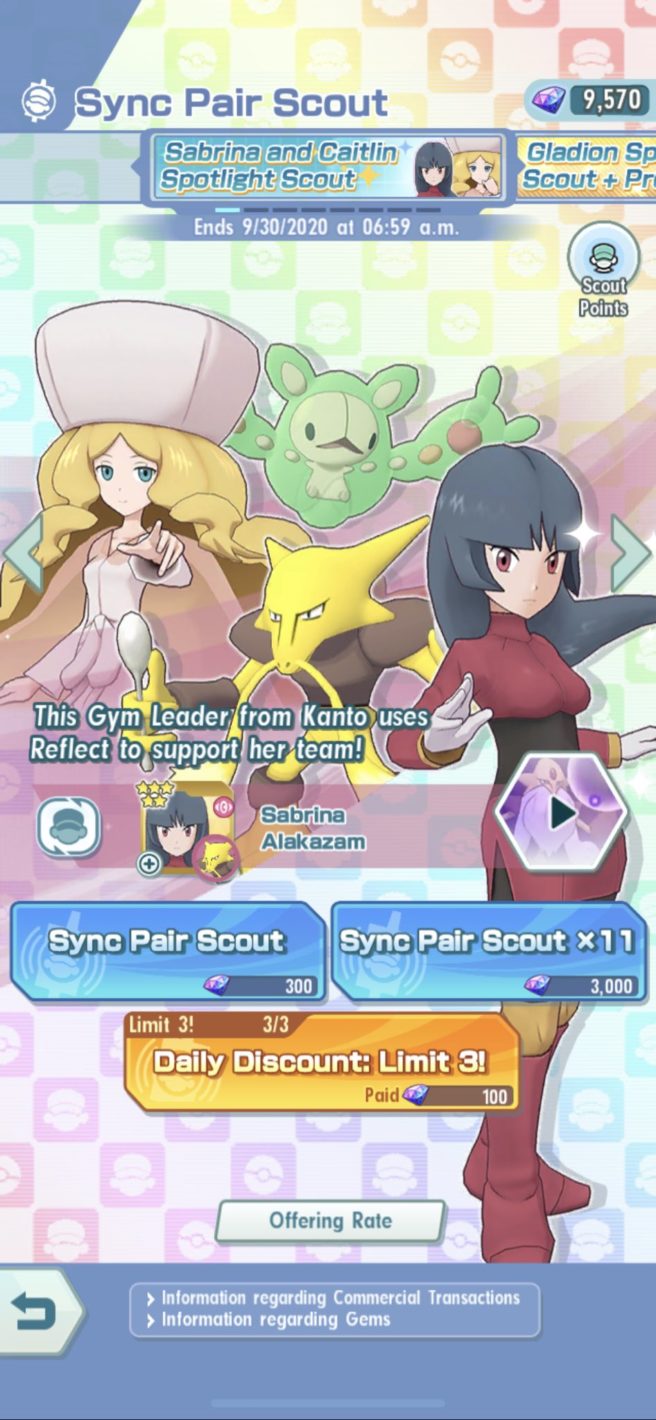 Another new Spotlight Scout is now live in Pokémon Masters EX. This Spotlight Scout focuses on the Sync Pairs of Sabrina & Alakazam and Caitlin & Reuniclus. This will last until September 30th at 05:59 UTC. You can chase after these Psychic-themed duos for the rest of the month — will you be trying to add them to your Sync Pairs?