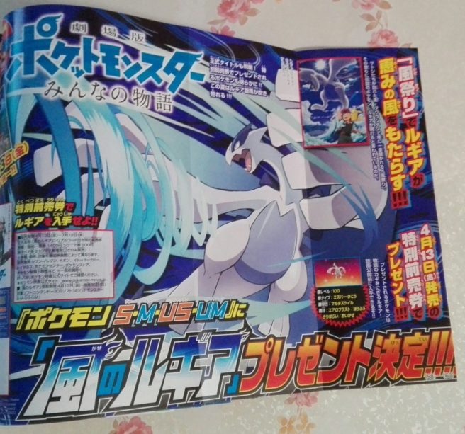 A new Pokemon movie in Japan always means some tie-in promotions with the current games, and this time will be no different, as the latest issue of CoroCoro magazine reveals. The latest Pokemon movie, titled “Everyone’s Story”, will be released in Japan on July 13th. The Legendary Pokemon its story focuses on is Lugia, and as such, Lugia will be distributed via a serial code if you pre-book tickets for the movie between April 13th and July 12th. Codes will be valid until September 30th and can be redeemed in Pokemon Sun, Moon, Ultra Sun and Ultra Moon.